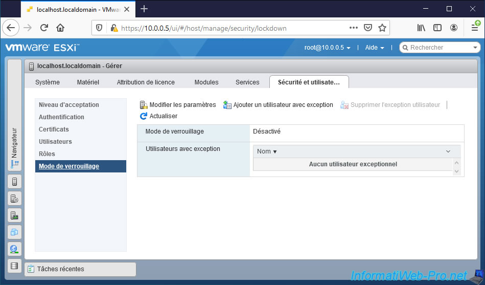 Vous pourrez également ajouter des utilisateurs avec exception pour leur permettre de gérer cet hôte VMware ESXi même lorsque le mode de verrouillage est activé.