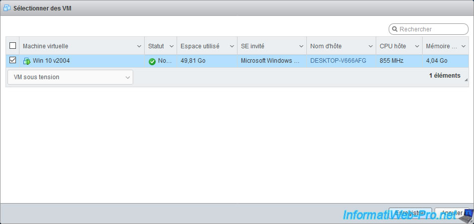Cochez la machine virtuelle souhaitée et cliquez sur Enregistrer.