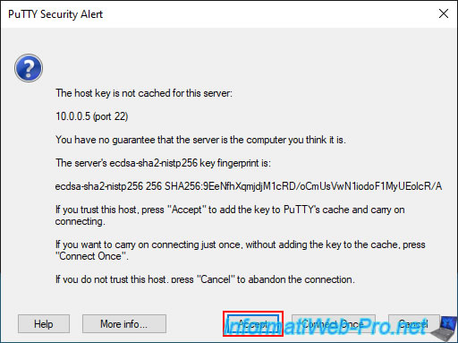 Cliquez sur "Accept" pour l'alerte de sécurité qui s'affiche.