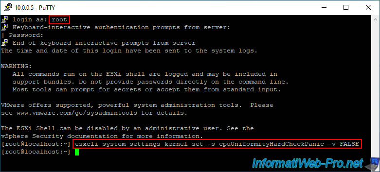 Pour que VMware ESXi 7.0.3 puisse continuer de fonctionner avec votre processeur, même si vous redémarrez votre ordinateur, il faut que vous ajoutiez l'option utilisée précédemment de façon permanente dans les options de démarrage de VMware ESXi.