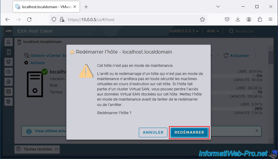 Redémarrez votre hyperviseur VMware ESXi 7.0.3.