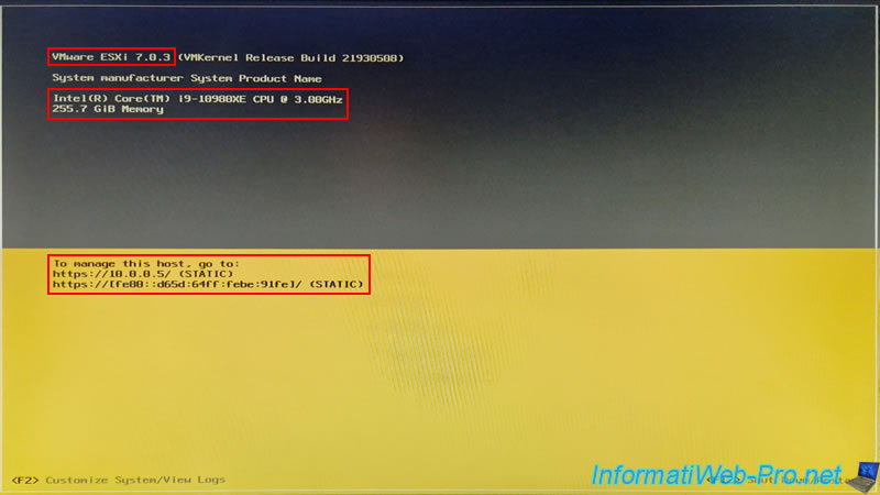 Si vous avez correctement tapé la commande citée précédemment, VMware ESXi 7.0.3 démarrera sans problème.