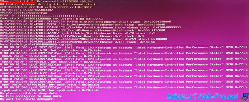 VMware ESXi 7.0.3 ... ...CPU_CheckUniformity#... ... Fatal CPU mismatch on feature "Intel Hardware-Controlled Performance States" (MSR 0x771).