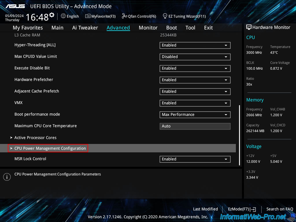 Ensuite, allez dans : CPU Power Management Configuration.