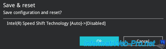 Sélectionnez la valeur "Disabled" (désactivé) pour ce paramètre "Intel(R) Speed Shift Technology".