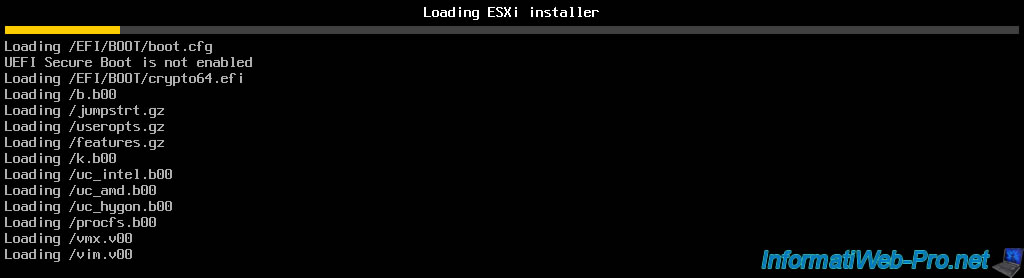 Patientez pendant le chargement des fichiers de l'installeur de VMware ESXi 7.