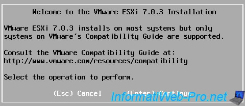 Une fois l'option ajoutée, appuyez sur "Enter" pour lancer l'installation de VMware ESXi 7.