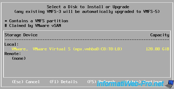 Si VMware ESXi 7 est déjà installé dans votre cas, la partition est déjà créée et vous ne pourrez donc pas modifier celle-ci.
