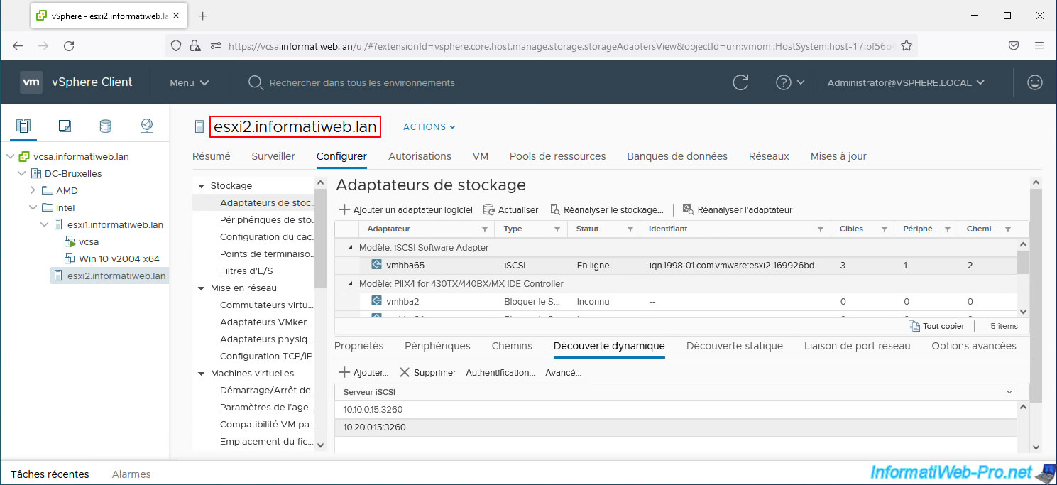 A nouveau, n'oubliez pas de configurer ce contrôleur iSCSI logiciel sur votre 2ème hôte VMware ESXi.