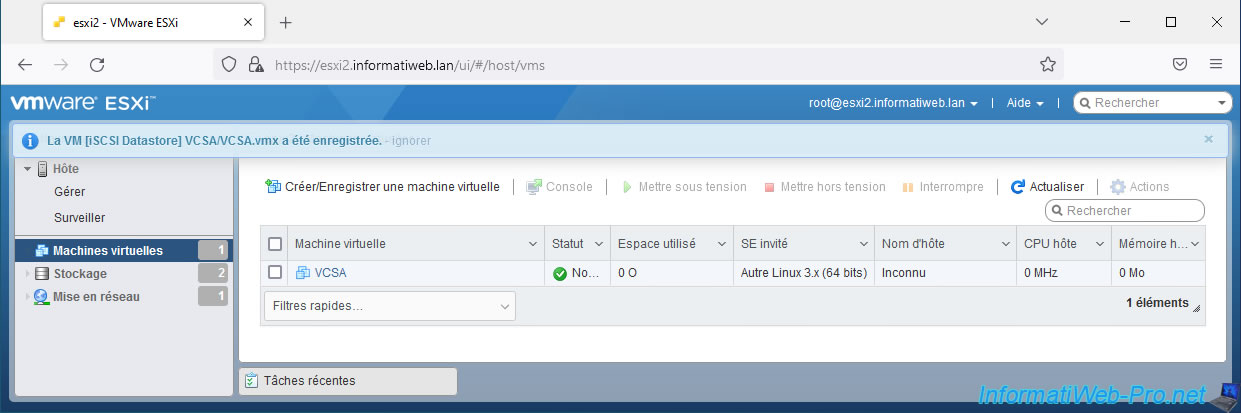 Dans notre cas, notre VM VCSA se trouve sur notre banque de données "iSCSI Datastore".