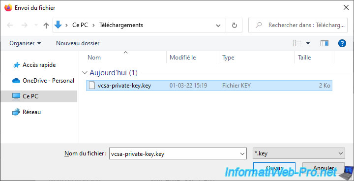 Sélectionnez le fichier "vcsa-private-key.key" créé précédemment et cliquez sur Ouvrir.