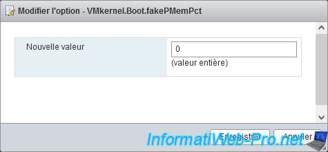 Le message "VMkernel.Boot.fakePMemPct a été modifié" apparait.