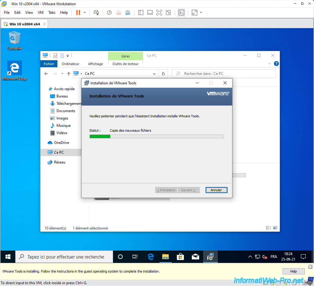 Ensuite, appuyez sur Enter pour lancer l'installation des VMware Tools.