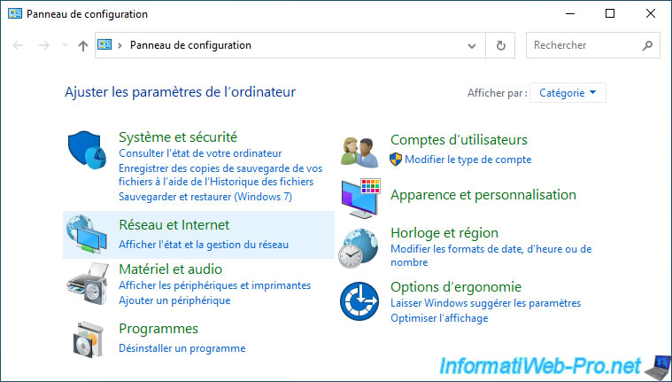 Sur votre PC hôte, ouvrez le panneau de configuration et allez dans : Réseau et Internet.