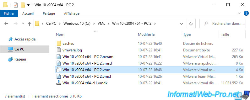 Pour que les modifications effectuées soient prises en compte par VMware Workstation Pro, vous devez faire un double clic sur le fichier de configuration modifié pour que VMware Workstation Pro lise à nouveau ce fichier de configuration.